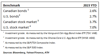 During Q1, we took a number of portfolio actions in our core models, particularly our capital growth models. After being zero-weight in fixed income for most of 2022, we added to our bond holdings in early 2023. In particular, we added longer-duration, Canadian investment-grade exposure, with the biggest additions in the early part of Q1, as our expectation was (and still is) that we were at or near peak bond yields.
